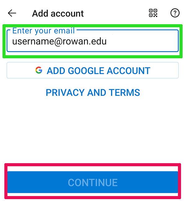 2. Enter your Rowan email address and select Add Account.
