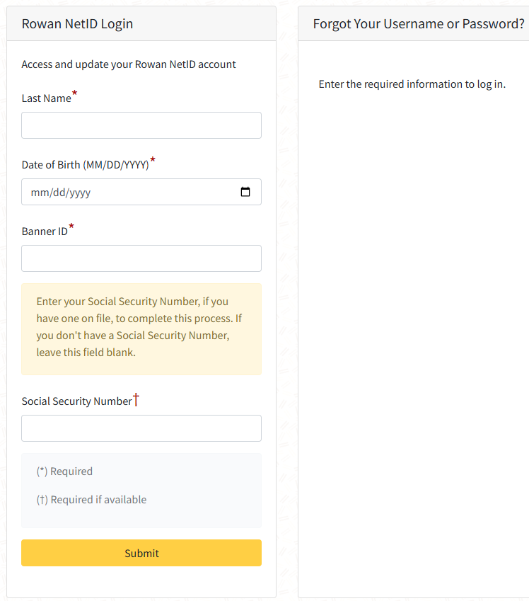 - Go to netid.rowan.edu and click the appropriate button for your situation: