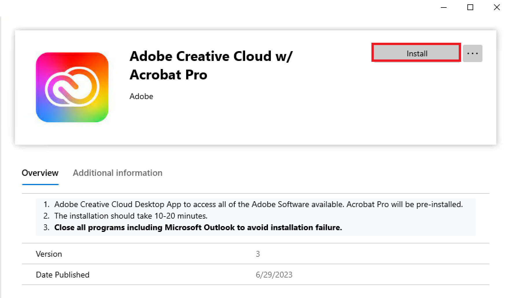 - Find the Creative Cloud Desktop Application installer and click Install