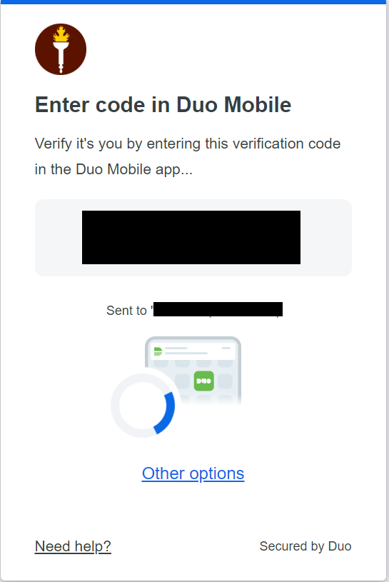 6. You will be prompted to authenticate through Duo using the device you added. For help using Duo, see our article on logging in using Duo