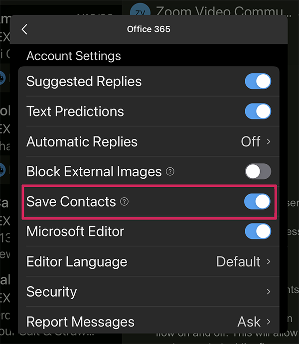 - Turn on Sync/Save contacts