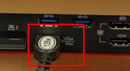 F. Ensure that the adapter goes into the 135 W slot on the Docking Station.