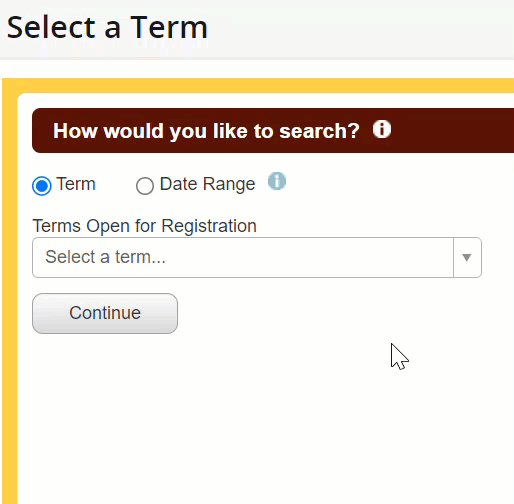 4. Use the drop-down to select a term then select Continue